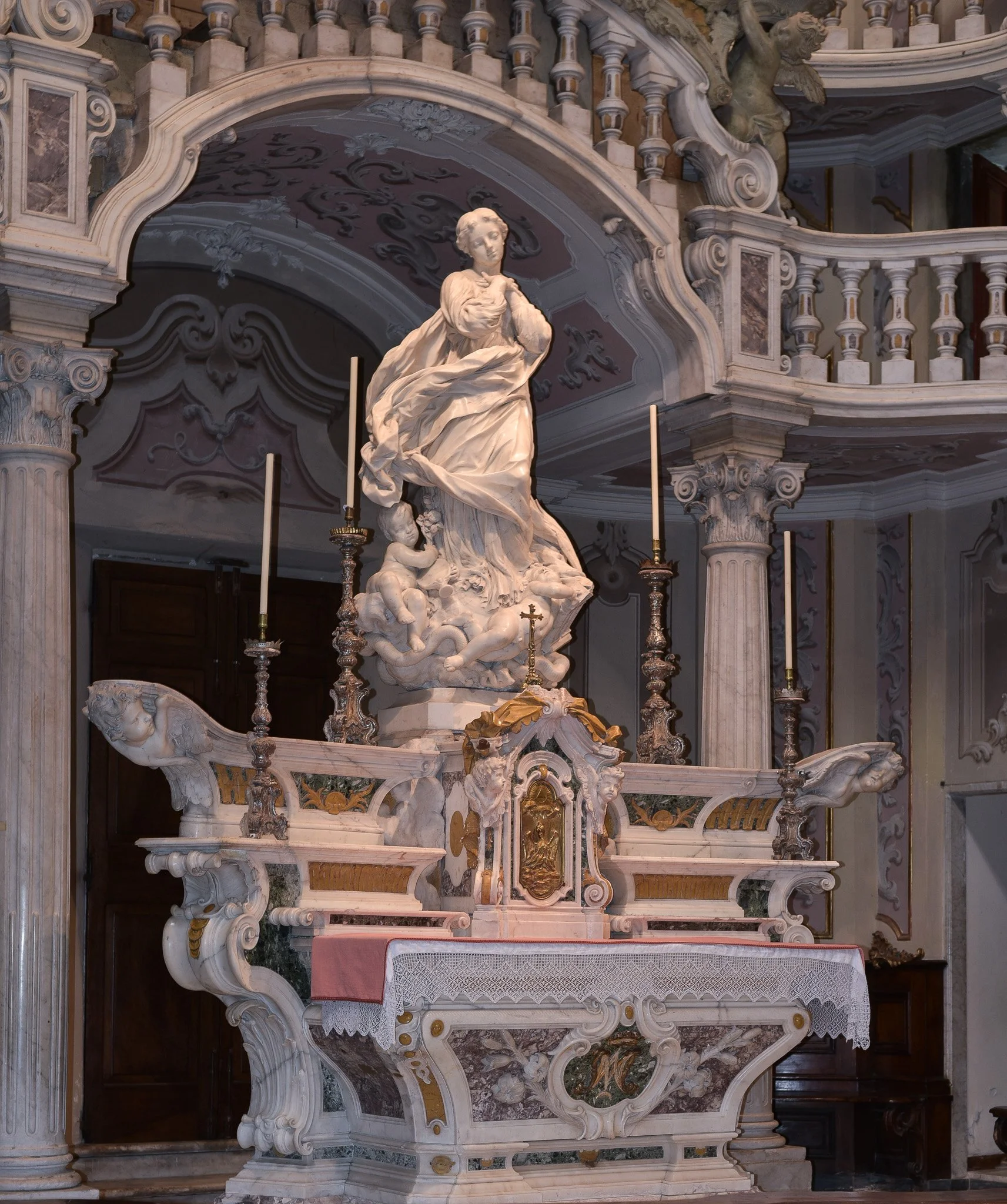 Sopra l’altare spicca la statua in marmo di Carrara raffigurante l’Immacolata, realizzata da Pierre Puget nel 1678.